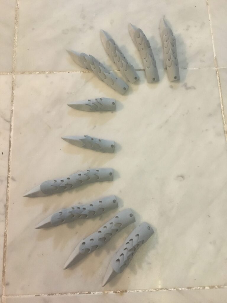 Now we still needed swords. Since there wasn’t enough time to make them from scratch (cosplayers and time management XD) we bought LARP swords off the internet. Turns out, we accidentally bought Andúril, Aragorn’s sword! It was only labled as “crusader sword”, but I noticed when we they arrived. A few of our group also bought these swords, so we agreed on Aragorn now being a raid boss, who drops Andúril and it’s best in slot for us. I did add a bit of fake rust with acrylic paint and bent the cross-guard to fit the Nazûl look a bit better.