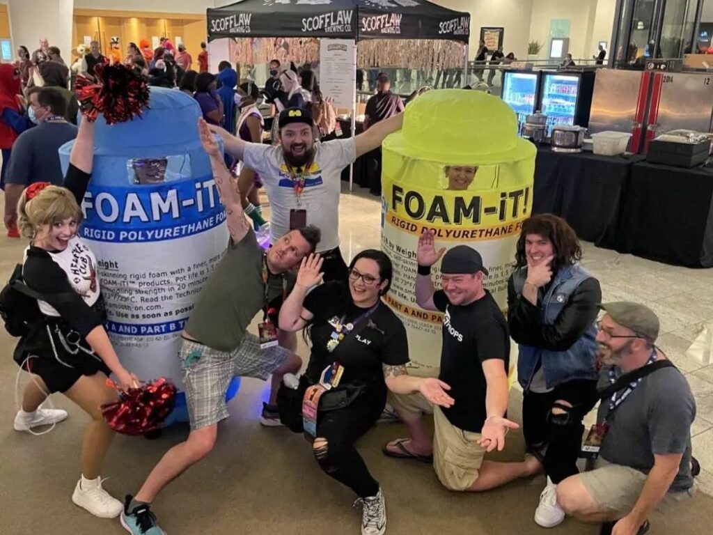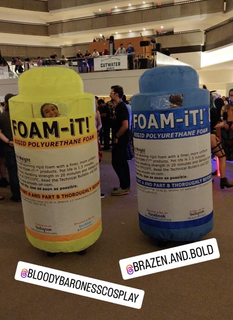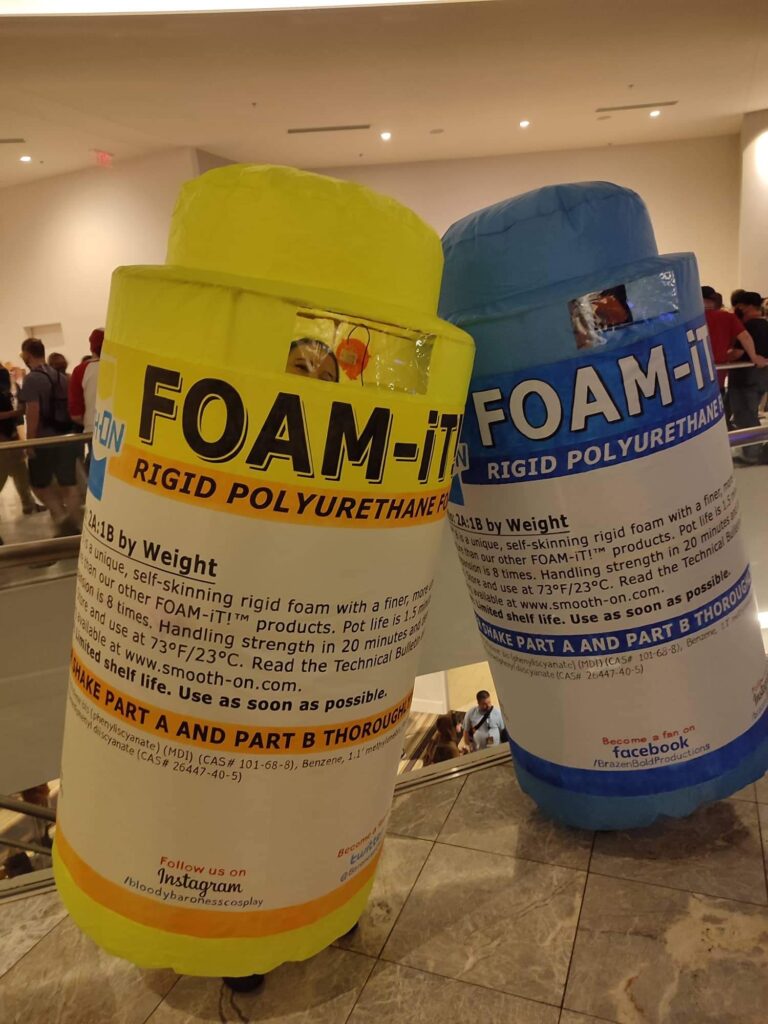 Okay, so during a BBPropShow, Brazen & Bold Productions’ stream, we were joking around about cosplay duo ideas and somehow, I cannot remember for the life of me, we came up with Smooth-On products! Jojo and Mattia from Brazen & Bold Productions use them a lot, so do countless other prop makers, and since they’re two components this would make a perfect fit for a part A and part B cosplay duo. This has then long been just an idea floating around in our heads until Dragon Con 2022 was about to come around and I said “Okay, do we actually wanna do this?” – and we did.